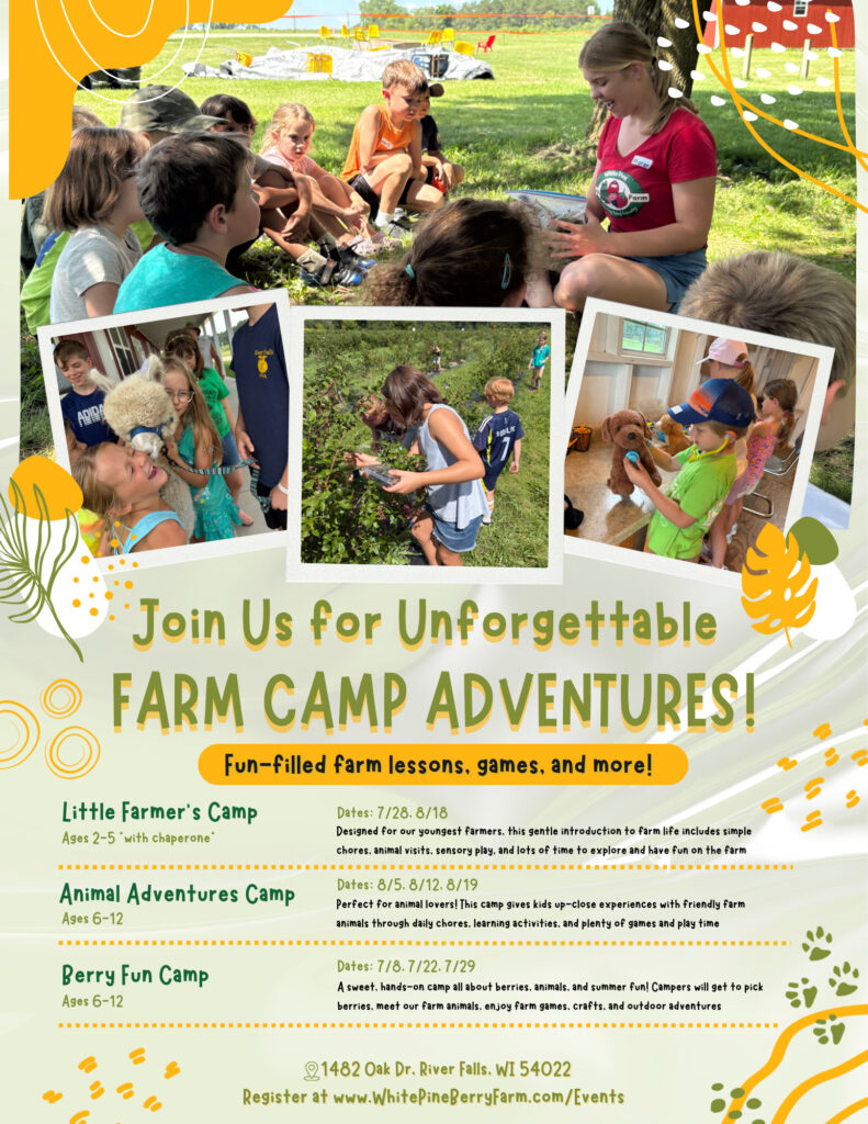Now is the perfect time to sign your kids up for our popular summer farm camps—spots fill up quickly, and you won’t want to miss out on the fun. Click the “Events” button below for all the details!